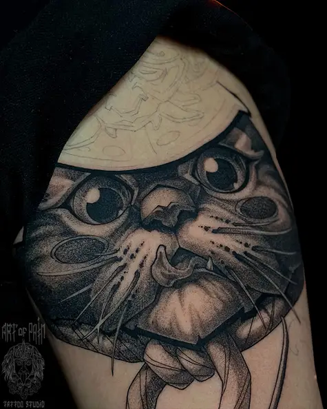Татуировка мужская нео-япония на руке котик (Денис Марченко) 8287