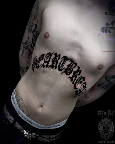 Татуировка мужская каллиграфия на животе надпись (Кирилл Плотников) 8302