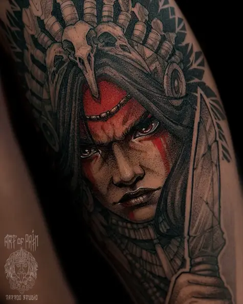 Татуировка мужская графика на голени Скво (Денис Марченко) 8330