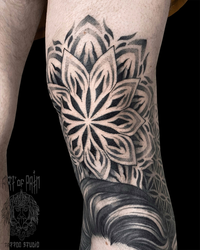 Татуировка мужская орнаментал на ноге мандала (Мария Котова) 8353