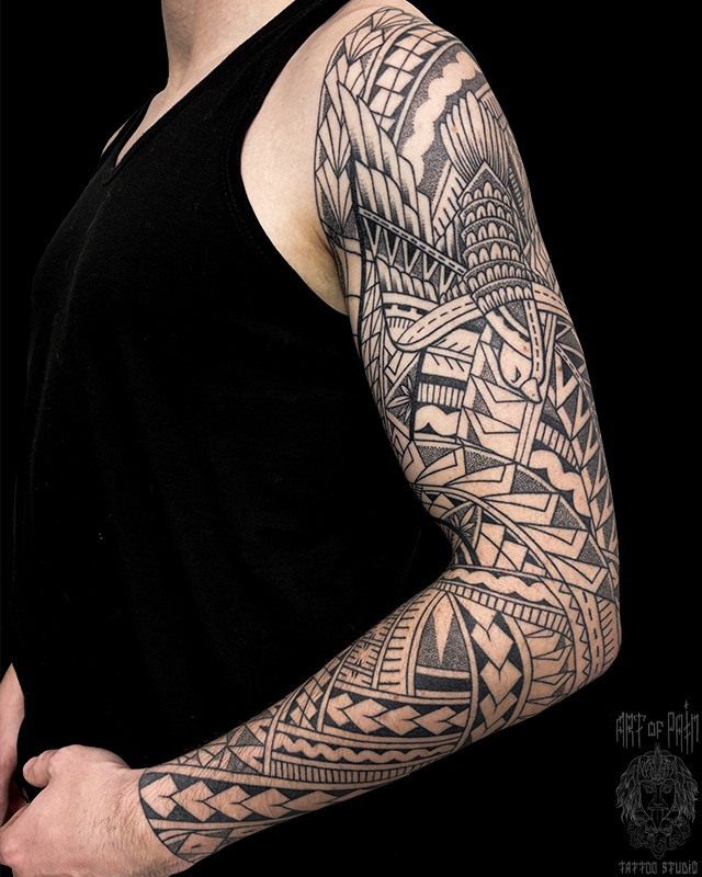 Татуировка мужская, орнаментал и полинезия тату-рукав узоры и птица (Николай Орф) 8365