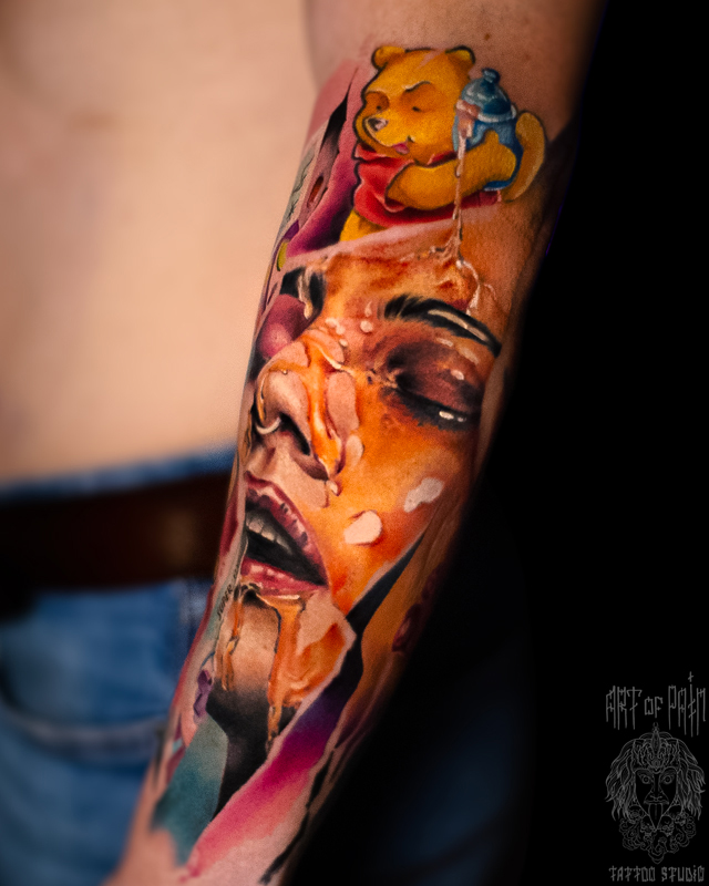Татуировка мужская цветной реализм на предплечье девушка (Дмитрий Шейб) 8368