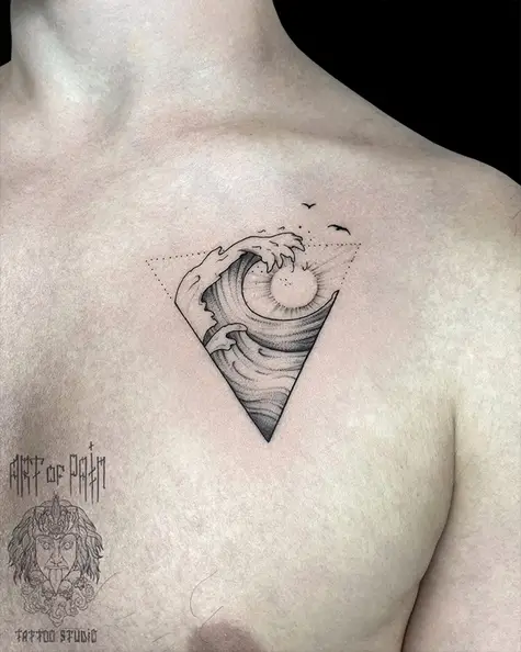 Татуировка мужская графика на груди волна (Мария Котова) 8375
