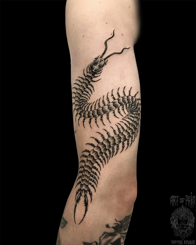 Татуировка мужская графика на плече мукадэ (Николай Орф) 8414