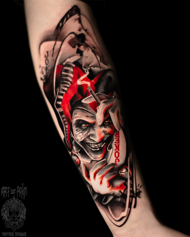 Татуировка мужская реализм хоррор на предплечье клоун (Дмитрий Шейб) 8441