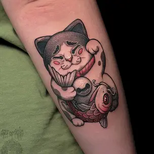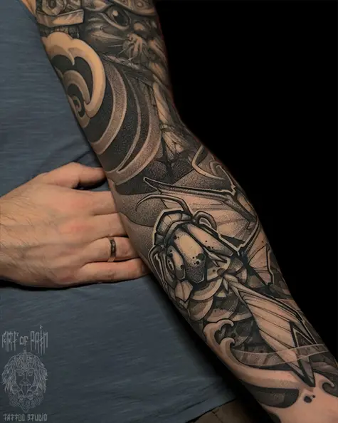 Татуировка мужская нео-япония тату-рукав кот и карп (Денис Марченко) 8454