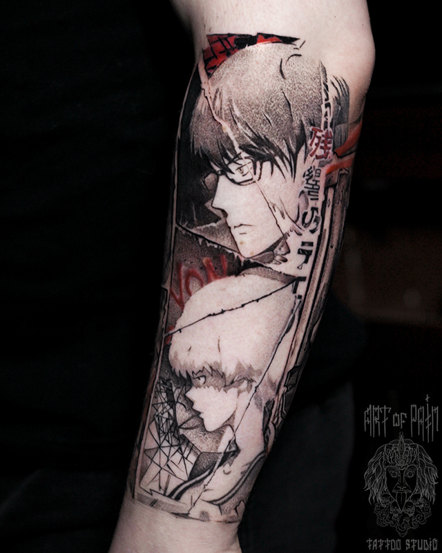 Татуировка мужская графика на предплечье аниме (Слава Tech Lunatic) 8461