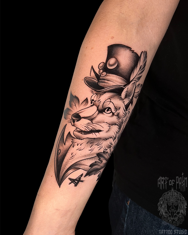 Татуировка мужская графика на предплечье лис (Евгения Шмидт) 8511