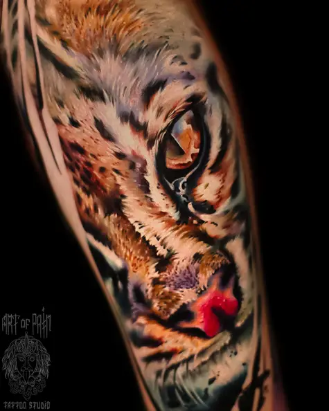 Татуировка мужская цветной реализм на голени онцилла (Дмитрий Шейб) 8519