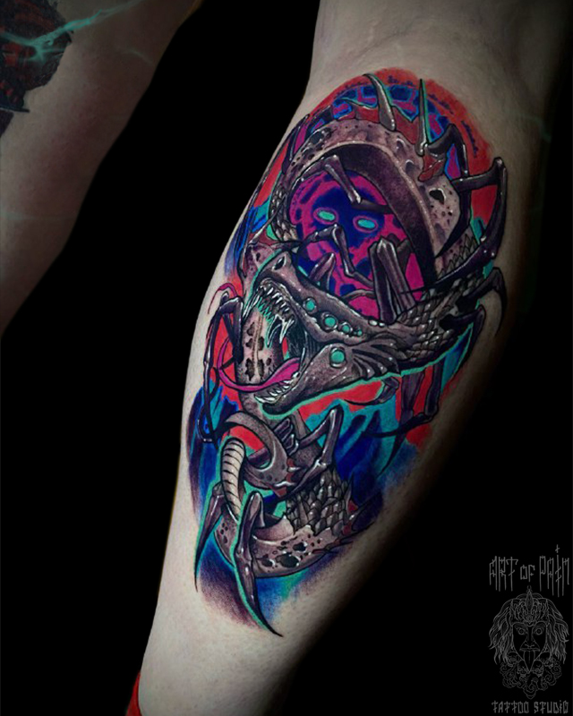 Татуировка мужская графика, хоррор на голени монстр (Кирилл Плотников) 8536