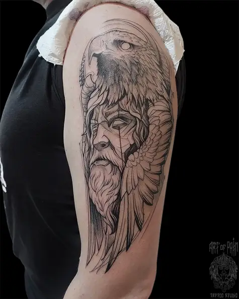Татуировка мужская графика на плече викинг (Анастасия Родина) 8581