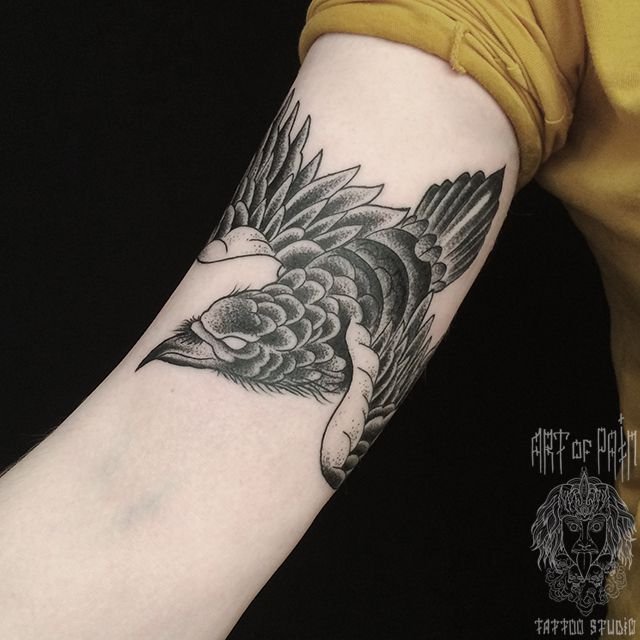 Татуировка мужская графика на руке птицы 860
