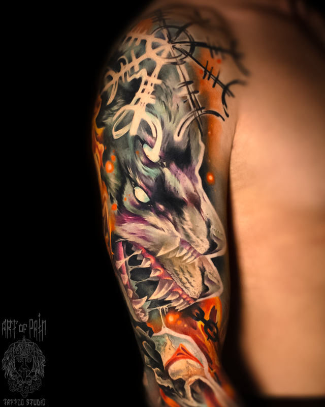 Татуировка мужская реализм на плече волк (Дмитрий Шейб) 8644