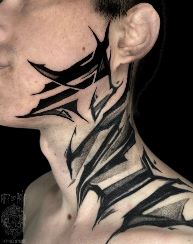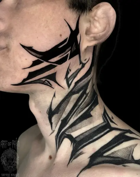 Татуировка мужская графика на шее надпись 8652