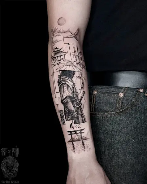 Татуировка мужская графика на предплечье самурай (Мария Котова) 8656