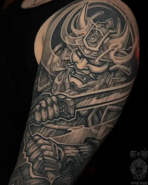 Татуировка мужская нео-япония на плече самурай (Денис Марченко) 8661