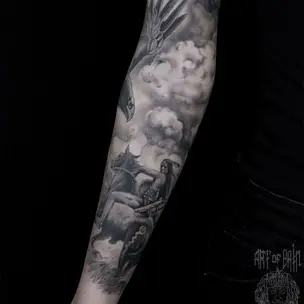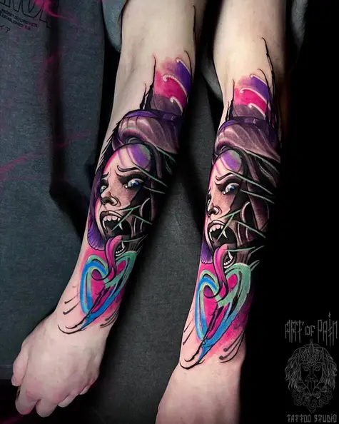 Татуировка мужская нью скул на предплечье девушка (Кирилл Плотников) 8689