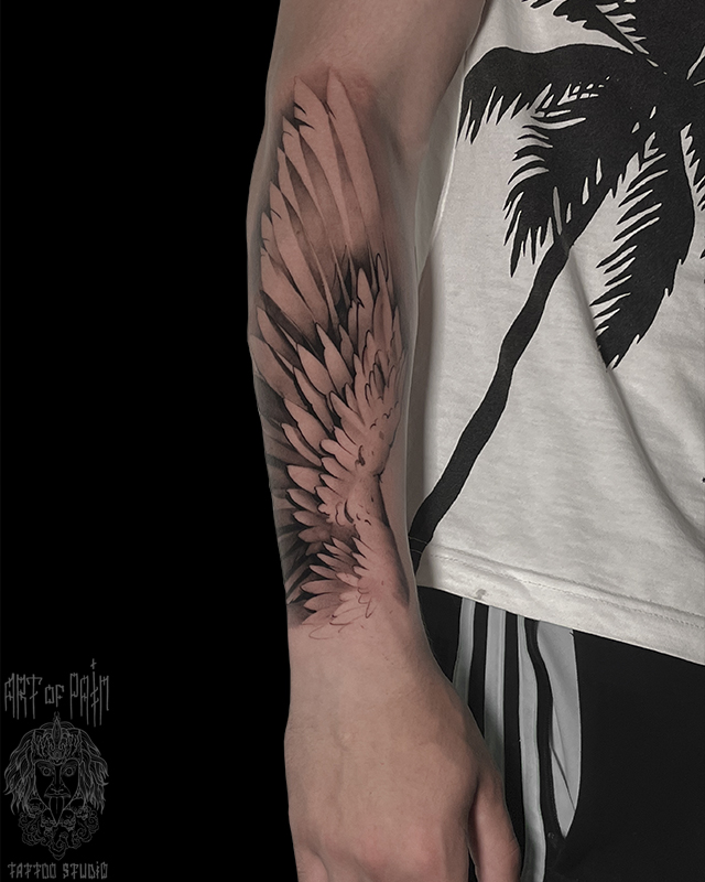 Татуировка мужская графика на предплечье крыло 8699