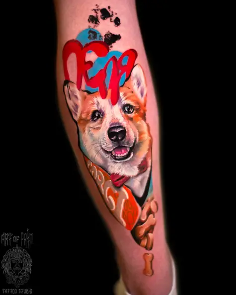 Татуировка мужская реализм на голени корги (Дмитрий Шейб) 8727
