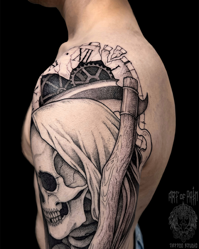 Татуировка мужская графика на плече смерть (Мария Котова) 8763