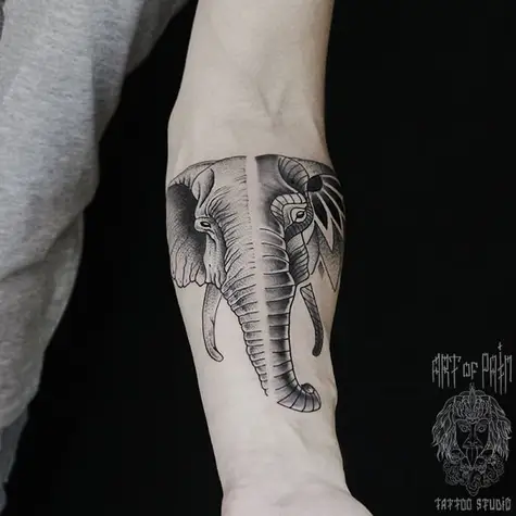 Татуировка мужская графика на предплечье слон 879