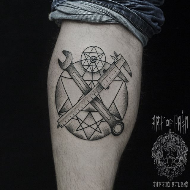 Татуировка мужская графика на икре узор 887