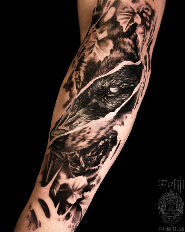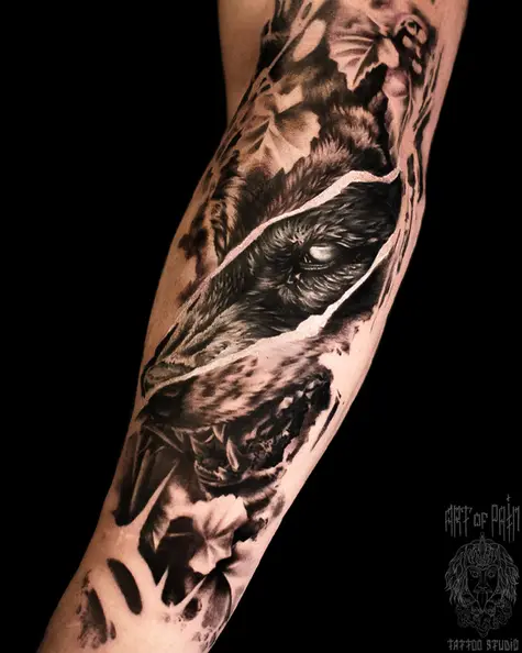 Татуировка мужская реализм на предплечье волк (Дмитрий Шейб) 8875