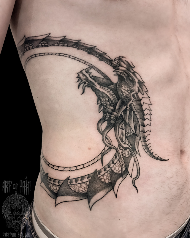 Татуировка мужская графика на боку уроборос (Николай Орф) 8894