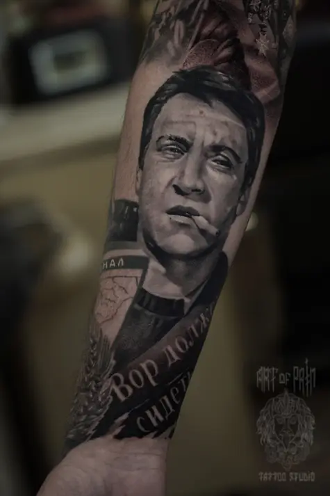 Татуировка мужская реализм на предплечье герой фильма 8935