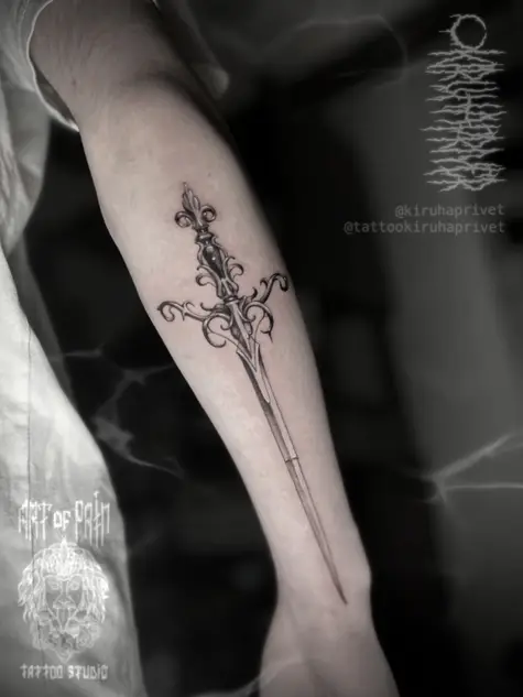 Татуировка мужская графика на предплечье кинжал (Кирилл Плотников) 9000