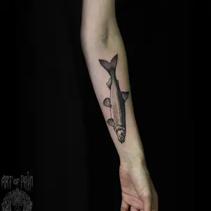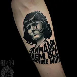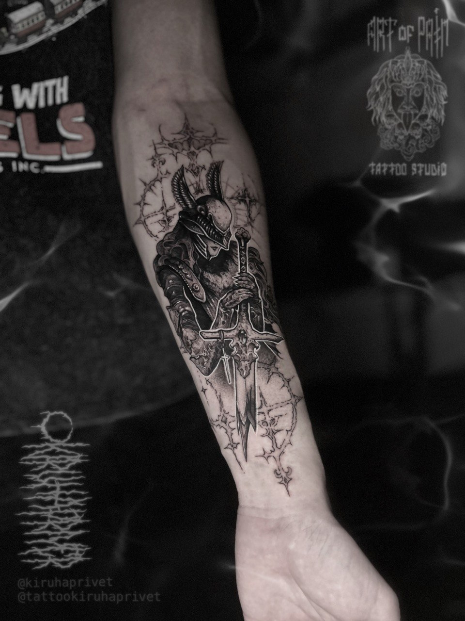 Татуировка мужская графика на предплечье воин и сломанный меч (Кирилл Плотников) 9001