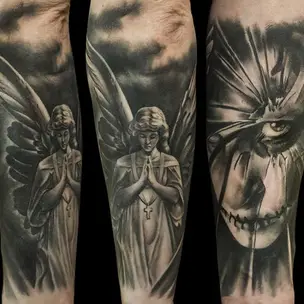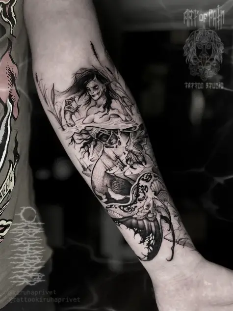 Татуировка мужская графика на предплечье русалка монстр (Кирилл Плотников) 9009