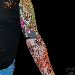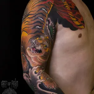 Татуировка мужская японский рукав кленовые листья (Ольга Добрякова) 9022