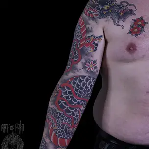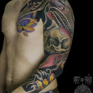 Татуировка мужская японский рукав карпы и волны (Ольга Добрякова) 9023