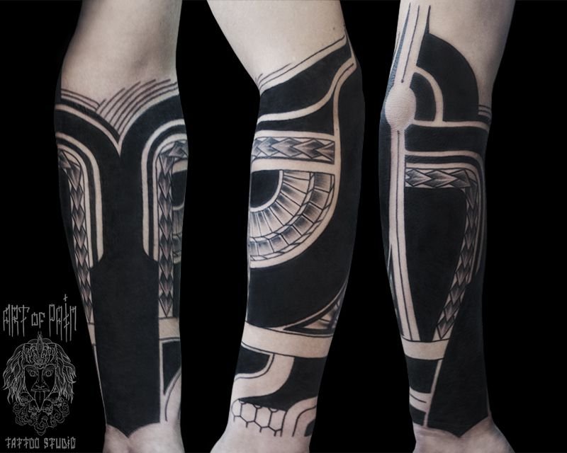 Татуировка мужская блэк ворк на предплечье орнамент 954