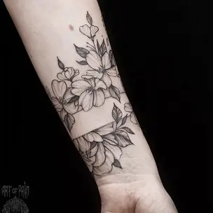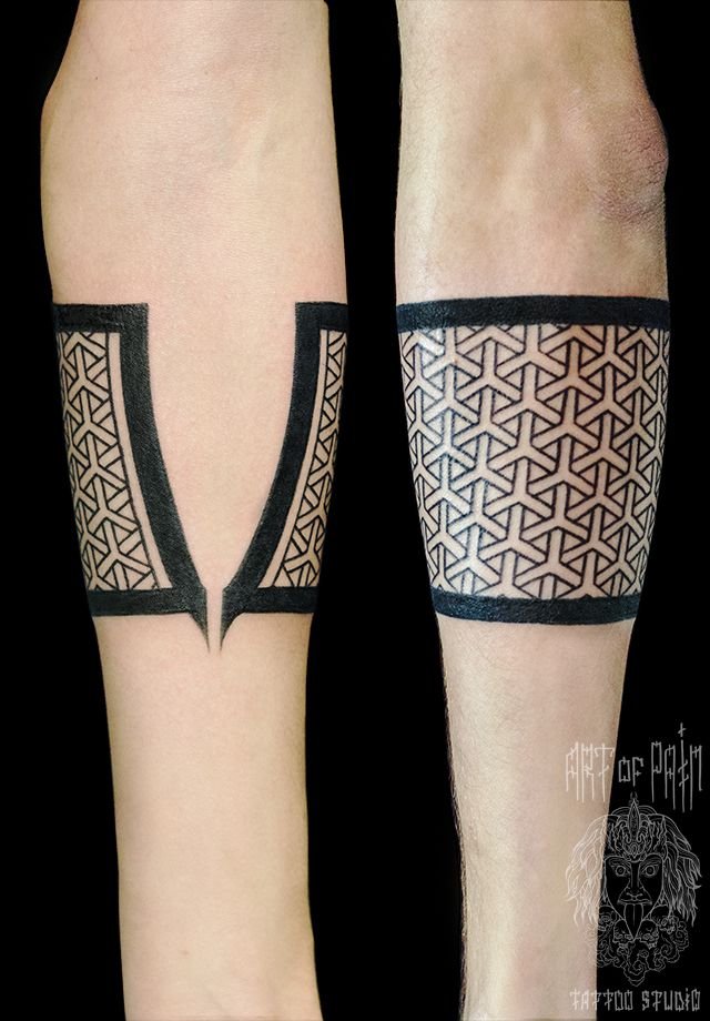 Татуировка мужская графика на предплечье браслет с орнаментом 956