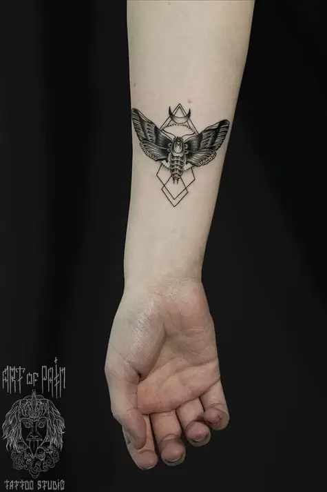 Татуировка мужская графика на предплечье мотылек 966