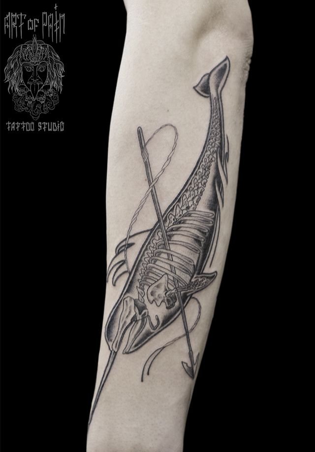 Татуировка мужская графика на предплечье рыбы 976