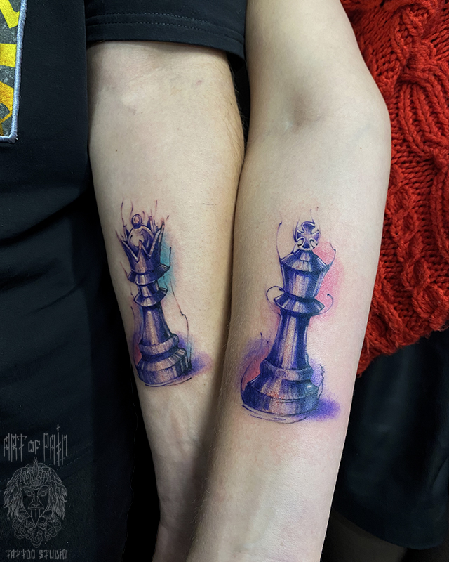 Татуировка парная графика на предплечье шахматы (Анастасия Родина) 7811