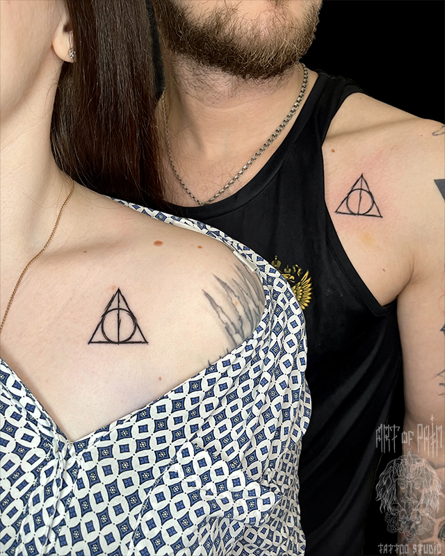 Татуировка парная графика на груди дары смерти (Евгения Шмидт) 8584