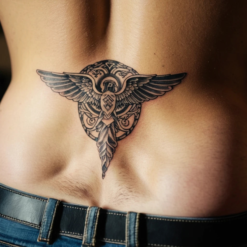 Эскизы мужских татуировок на пояснице