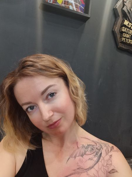 Можно сказать, всю жизнь мечтала о татуировке дракона. Увидев работы Анастасии Родиной, наконец-то решилась осуществить мечту. Ради этого приехала из Москвы.