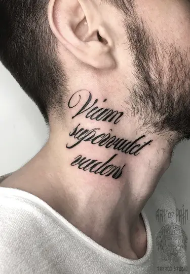 - Подбирайте шрифт сообразно эпохе, в которую появилось выбранное вами для тату изречение. Для цитат из Шескпира, Данте Алигьери или Гете подойдут разновидности антиквы. Для эпичных фраз из европейского фольклора – шрифты семейства «Готик». Для нарочито современных изречений будут уместны гротескные начертания.