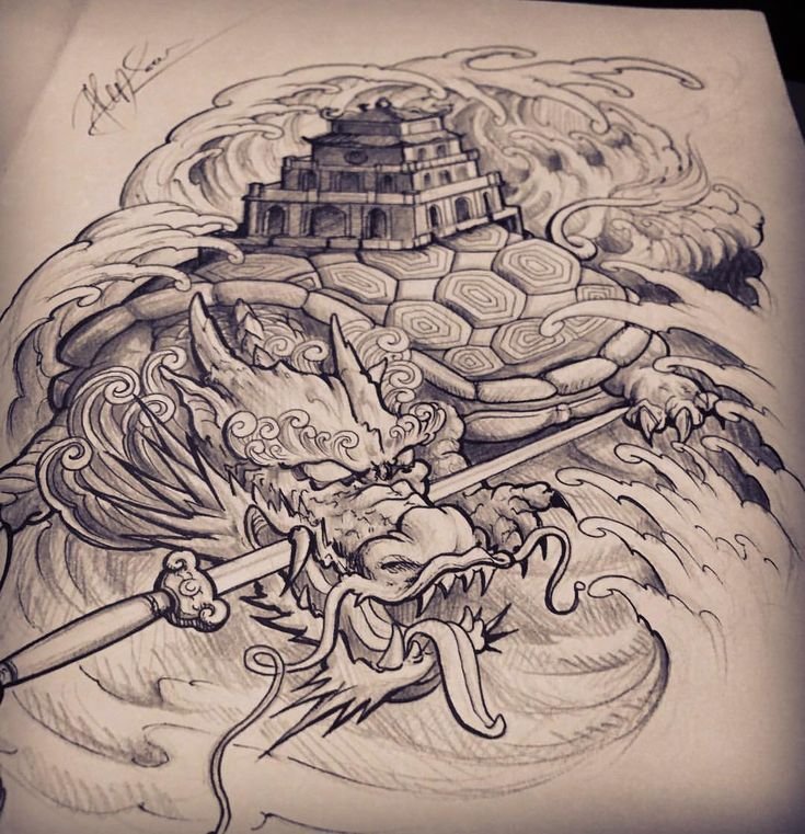 Значение тату Черепаха-дракон