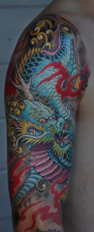 Данное изображение будет отлично смотреться на таких частях тела, как бедро, плечо и спина. Если же делать ее на менее крупных участках, то могут потеряться самые значимые детали, а японское тату без них не будет нести той самой желаемой энергетики.