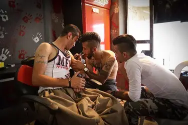 Пример на фотографии: тату-салон работает в Сирии – светской стране с преобладанием мусульманства. Примерно три года назад украшение тела постоянными изображениями стало в стране довольно популярным среди молодых мужчин. Причем сюжеты и темы вполне обычны.