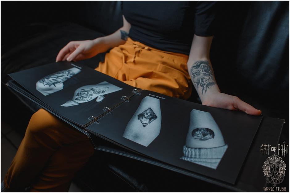 - При отсутствии подходящей исходной картинки – описать на словах мастеру свои пожелания по сюжету и стилистике. Мастер создаст эскиз будущей татуировки, отсекая неподходящие идеи и предлагая лучшие варианты.