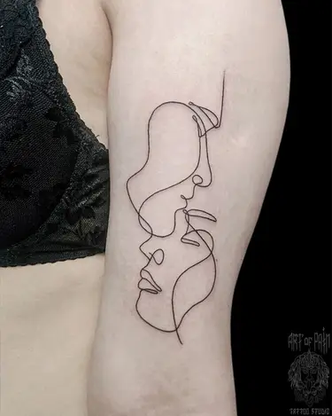 - тату одной линией – визуально эскиз содержит непрерывный, чаще разомкнутый, абрис;