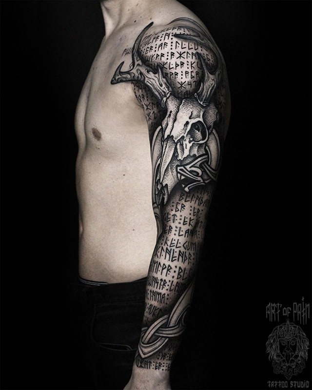 Татуировка с рунами по всей руке