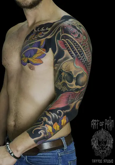 Стоимость «рукава» зависит от тарифа мастера. Минимально татуировка обойдется в 56 000 рублей, максимально –150 000 рублей. Чаще всего это 80 000-100 000 рублей.